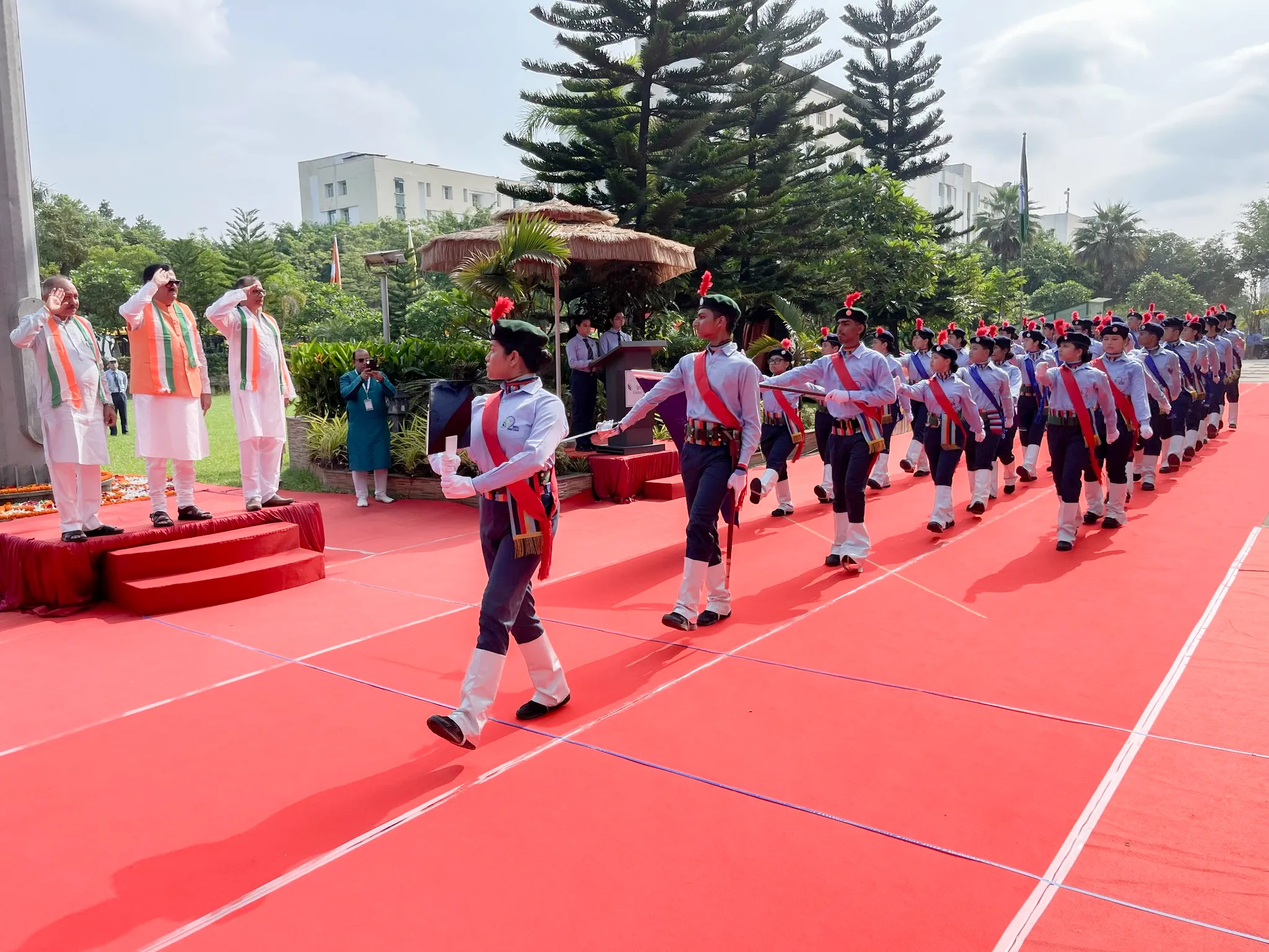 The head of the school Dr. Dillip Kumar Panda addressed the August gathering wherein he said that long years ago some people made a promise and after a lot of struggle India has made a tryst with destiny. This struggle taught us resilience. But our freedom comes with a lot of challenges where the question if we will be able to breathe free and clean air or drink pure water in the future looms large in the air. He asked the parents to teach their children the difference between exact education and education as propagated by social media. So the need of the hour is not only to produce techies who will propel development but at the same time use technology to build a more peaceful and sustainable world.