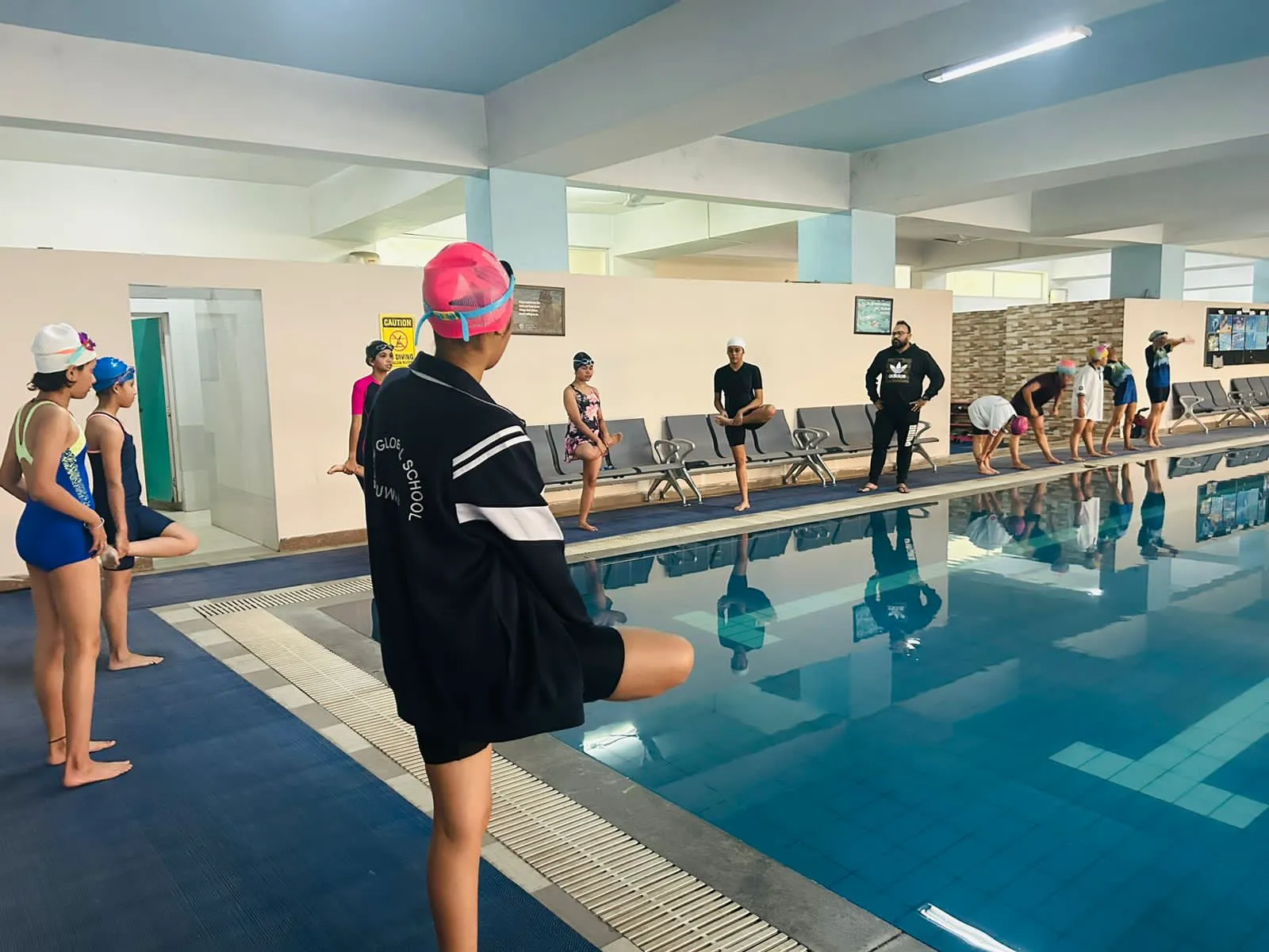 Advanced swimming classes commenced on January 30, 2024, exclusively for the swimmers of Royal Global School. These sessions are being led by Mr. Elvis Ali Hazarika, an accomplished international swimmer and the proud recipient of the Assam Sourav Award for 2023-24 bestowed by the Government of Assam. In addition to Mr. Hazarika, the in-house coaches of RGS are also actively involved in conducting the classes.