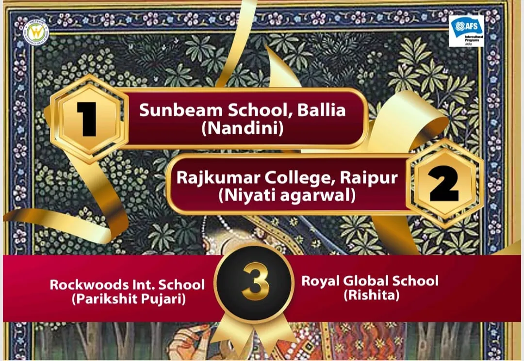 As part of the AFS India National School Activities program, our students have achieved remarkable success. Rishita Gogoi secured a Special Mention in the Splash of Nature organized by The Wisdom Global School, Haridwar. Prayash Kalita from Grade 10 achieved Second Position in the Vedic Maths Challenge, also organized by The Wisdom Global School, Haridwar. Shanvi Agarwal from Grade 9 was awarded a Special Mention in the Insight Exchange, hosted by Sunbeam Varuna School and Hostel, Varanasi.