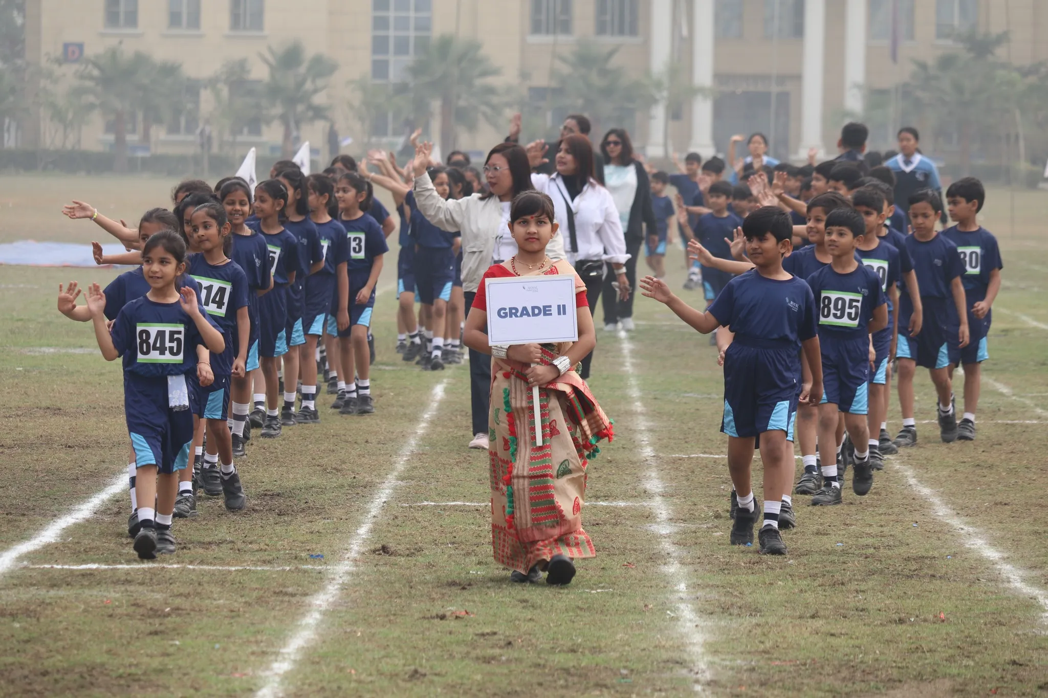 The day was filled with exciting activities, including track & field events, parent races, Yoga, rhythmic gymnastics, Taekwondo performances by Grade III students, and a horse-riding display by Grade V’s Jay Vardhan. The highlight was a dazzling aerobics performance by Grade II students and a captivating mass drill by the fifth graders. The Chief Guest and Director Dr. Arup Mukhopadhyay emphasized the importance of sports in building discipline, life skills, and well-rounded individuals. The event was a testament to the dedication of both students and parents in fostering a love for sports.