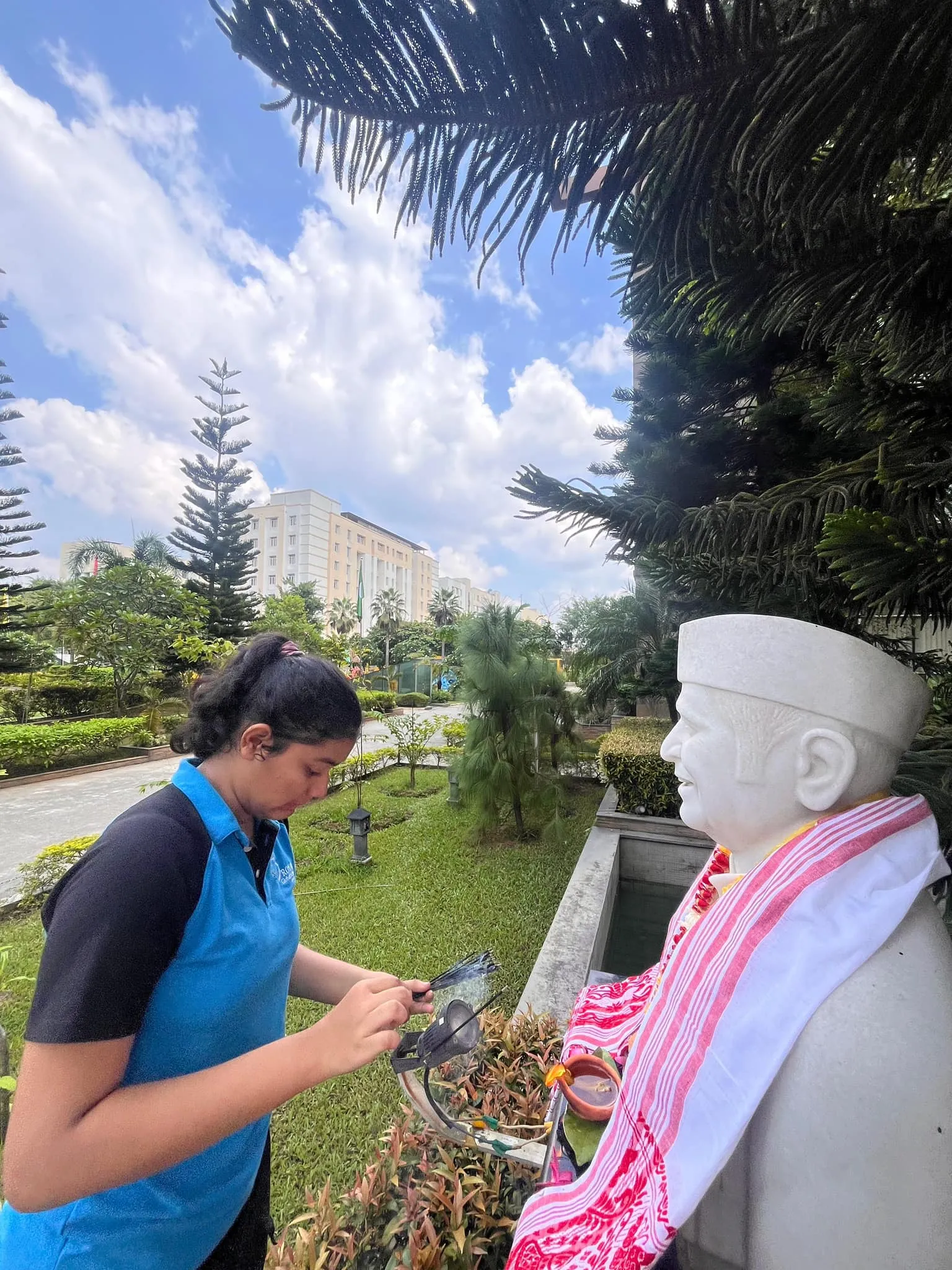 The atmosphere at Royal Global School was filled with joy and reverence as hostellers gathered to celebrate the birthday of the legendary Dr. Bhupen Hazarika. Renowned for his exceptional talents as a singer, lyricist, composer, scholar, and artist, Dr. Hazarika was also a visionary humanist who dreamt of a society without class distinctions. His powerful voice and thought-provoking lyrics left an indelible mark on millions, establishing him as a cultural icon in Indian music. The hostellers honored his legacy by singing one of his famous songs, echoing his timeless message of unity and equality. It was truly heartwarming to witness the students celebrate Dr. Hazarika’s legacy, keeping his spirit alive through their heartfelt tributes.