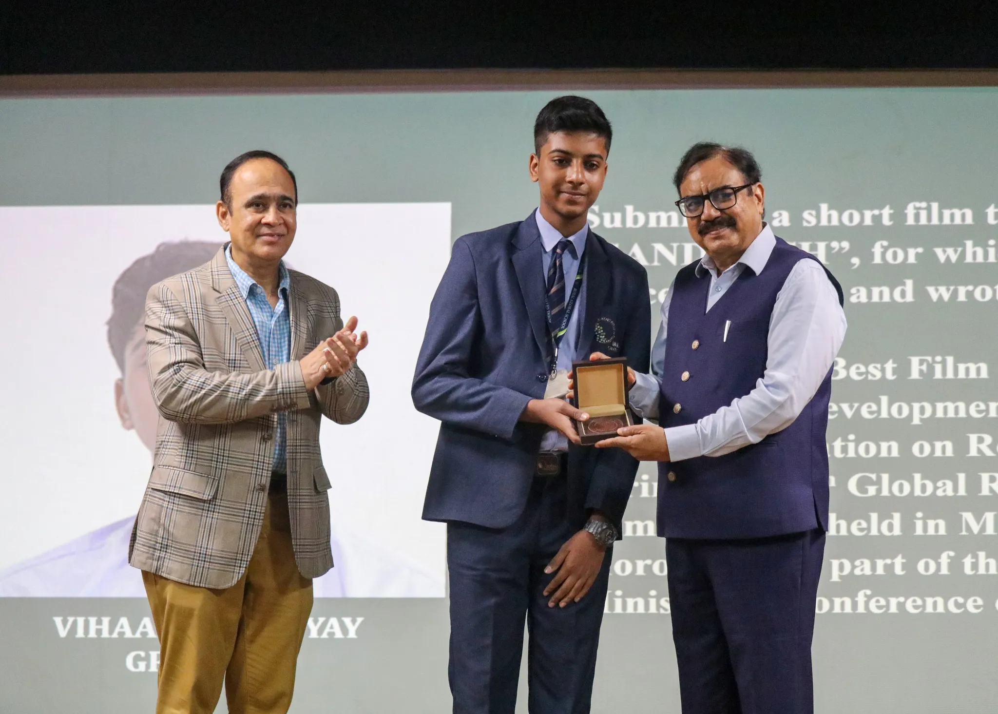 Vihaan Upadhyay (Grade X) won Best Film for “Sandwich” at the 10th Global Road Safety Film Festival in Morocco under SDG 5 – Quality Education.