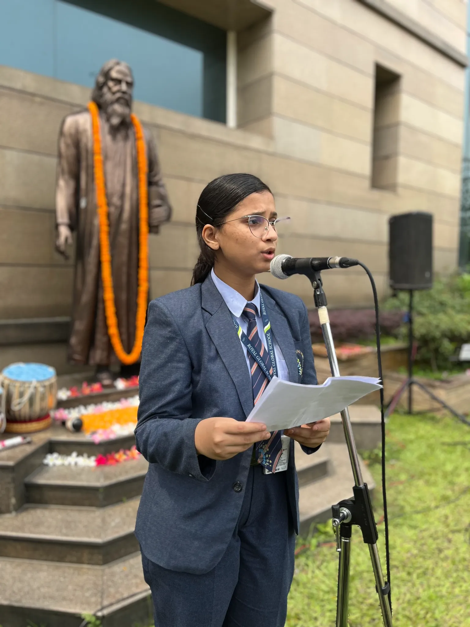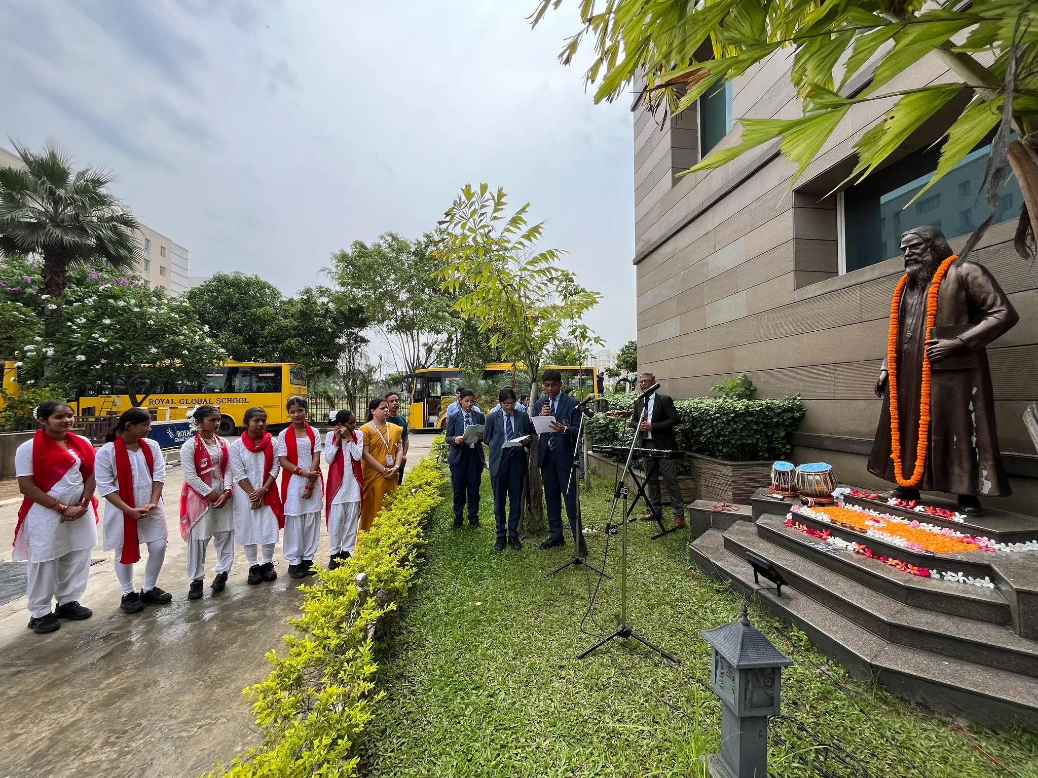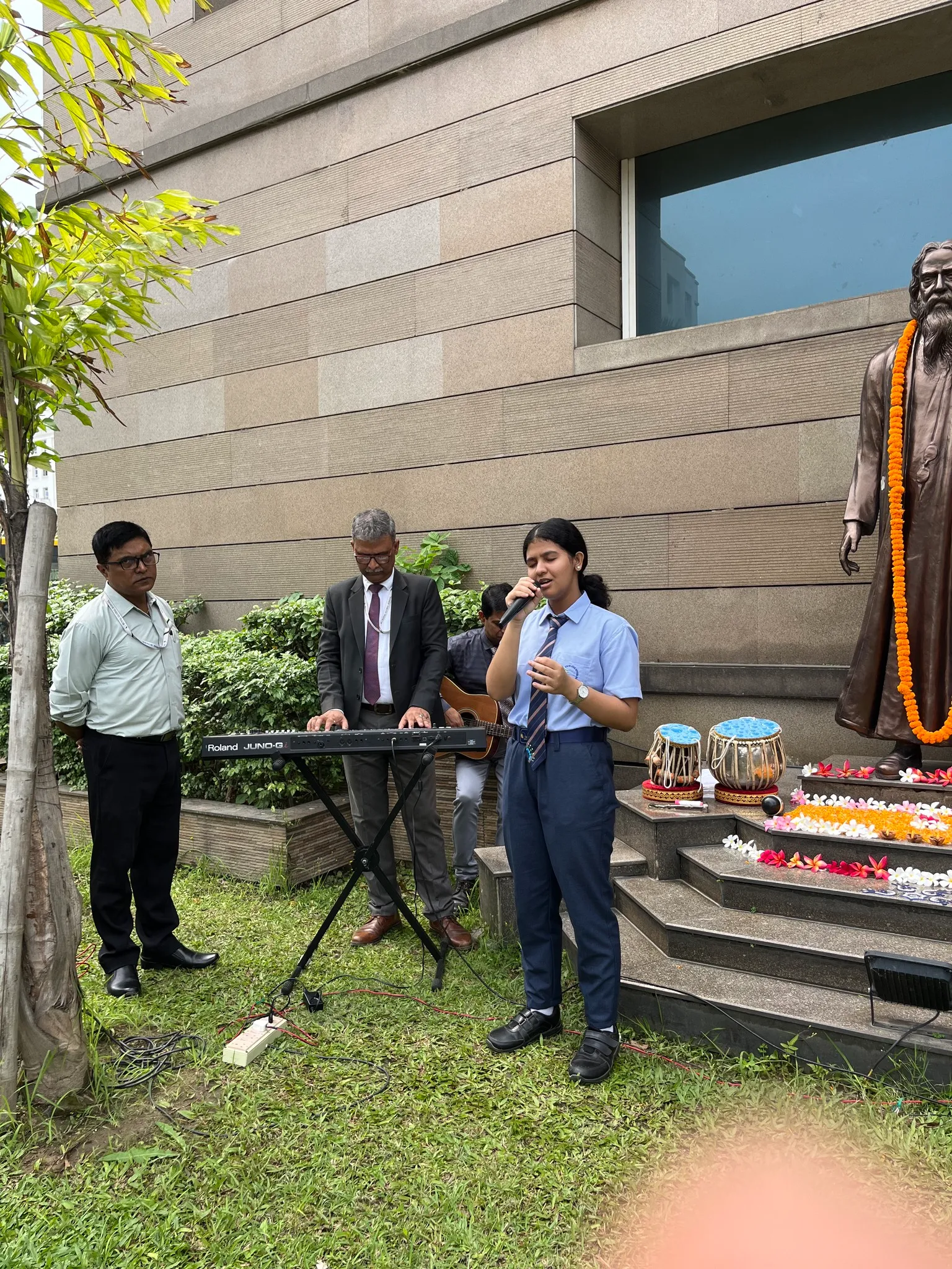The celebration commenced with the lighting of the lamp and garlanding of Tagore’s statue, symbolizing our respect and admiration for his timeless contributions. Students paid homage through a speech on the life and works of Gurudev, a violin recital, a flute recital and a melodious Rabindra sangeet.