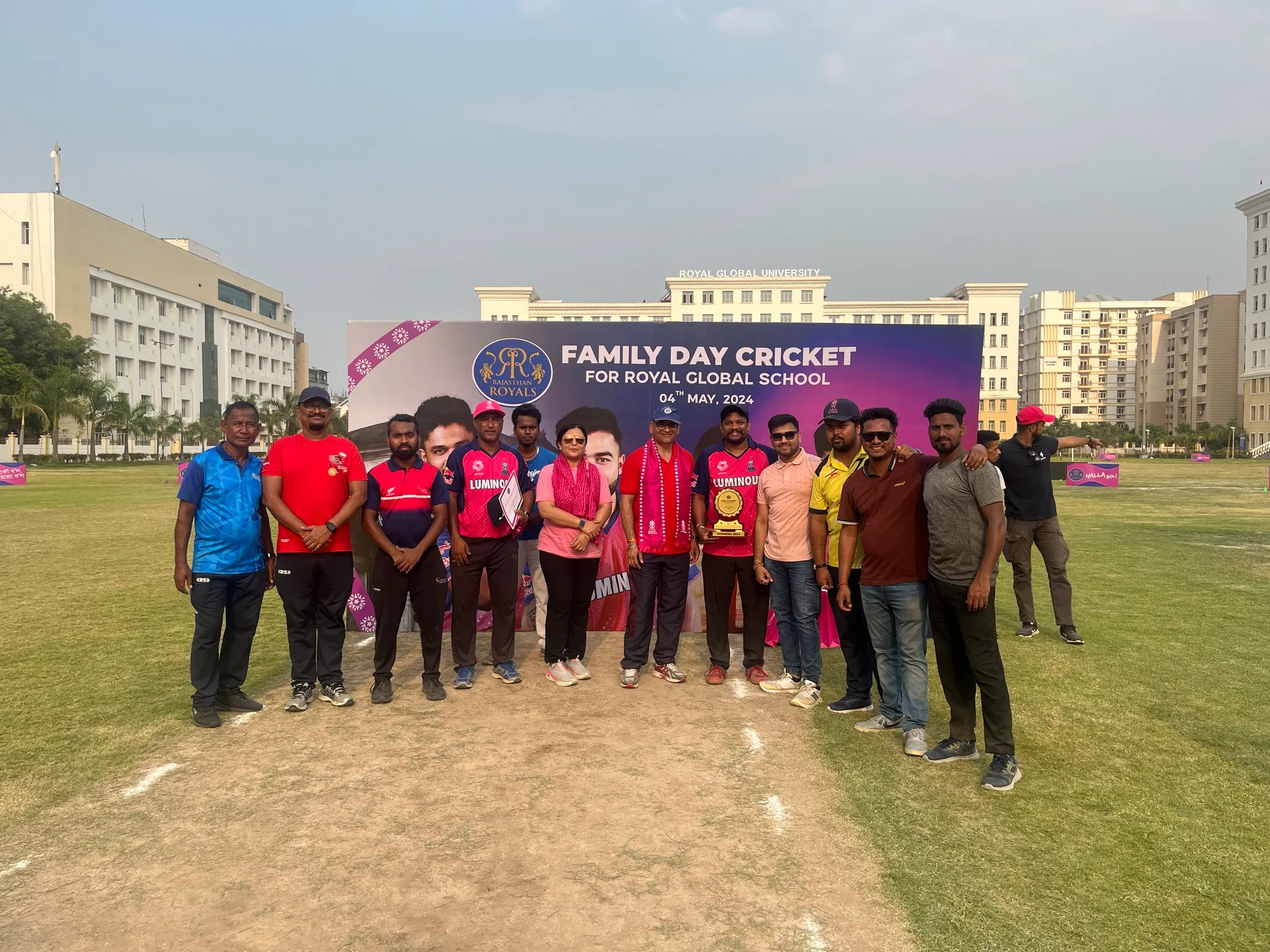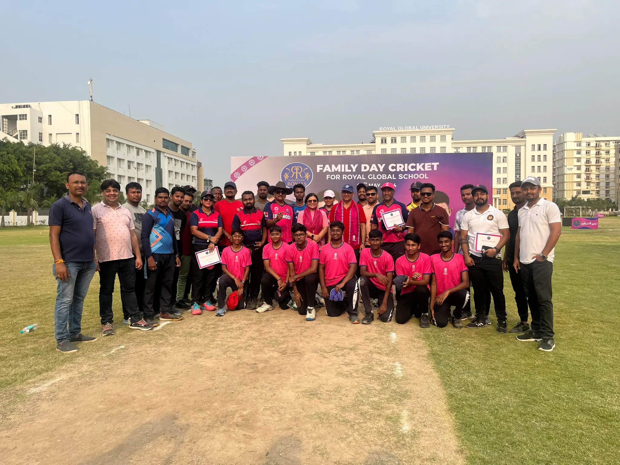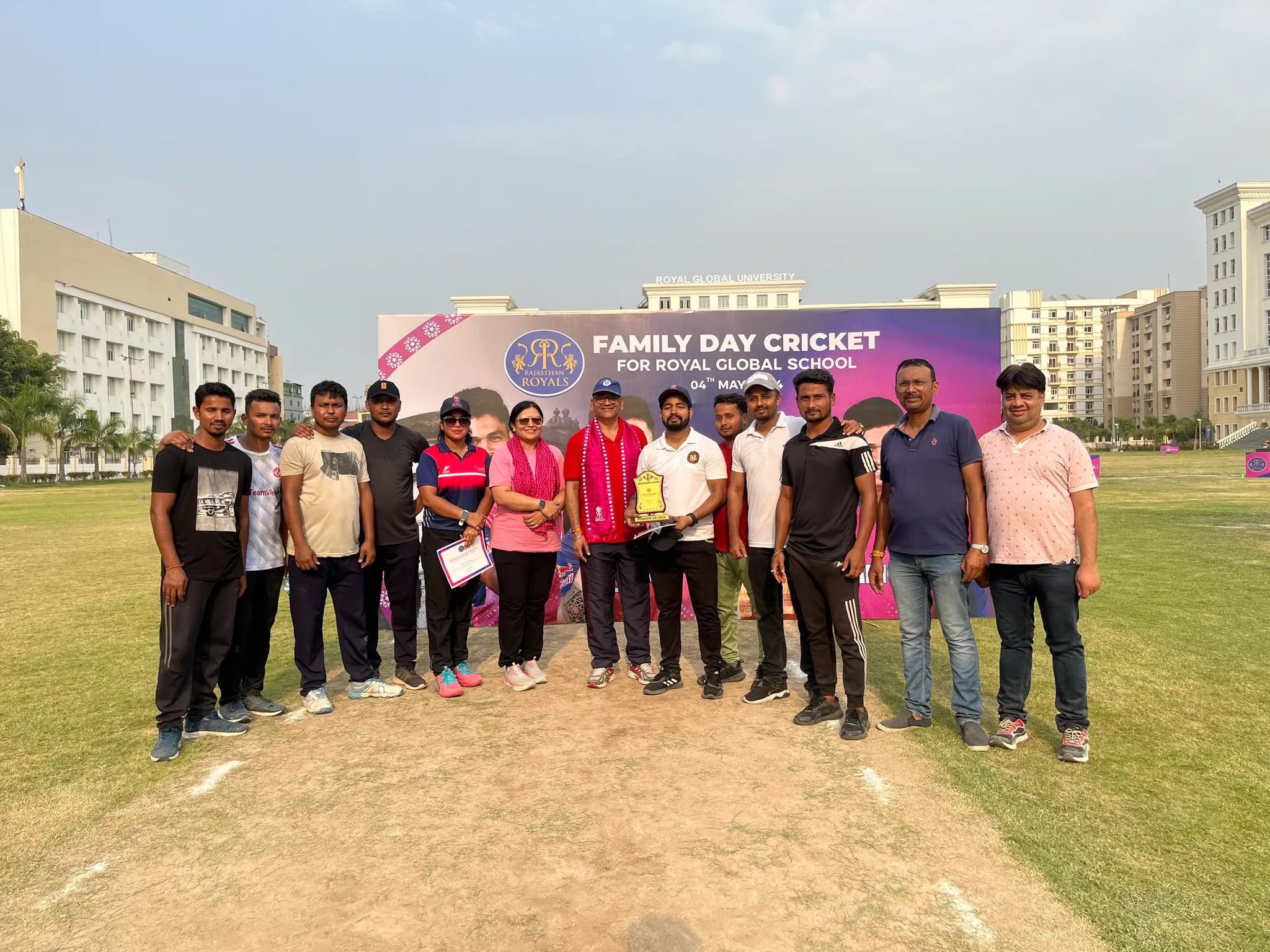 On May 4th, 2024, Rajasthan Royals organized the Family Day Cricket Bash at the Royal Global School playground, inviting families, students, and staff of the school to participate. Sixteen teams, comprised of parents, students, and staff, competed enthusiastically throughout the event.