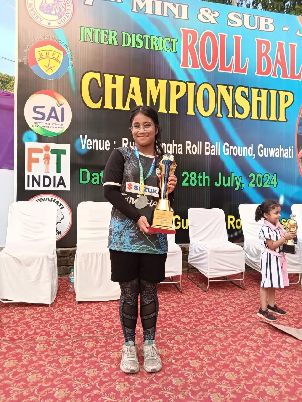 2. Aarathrika Baruah, representing Guwahati, Kamrup (M), won the Silver Medal in the Under-14 category and was also awarded Player of the Match.