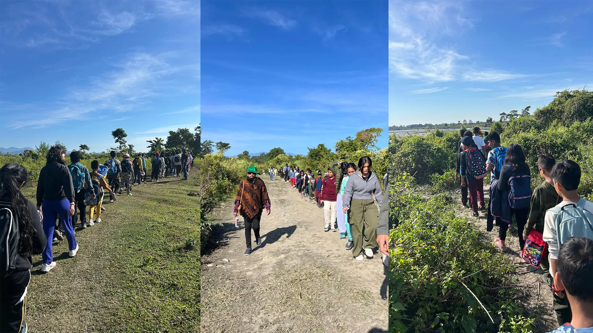 The day began with an exciting trek through the park’s lush greenery, where students spotted a diverse array of flora and fauna. This was followed by a visit to a nearby Mishing village, where they were introduced to the vibrant traditions and customs of the local community.