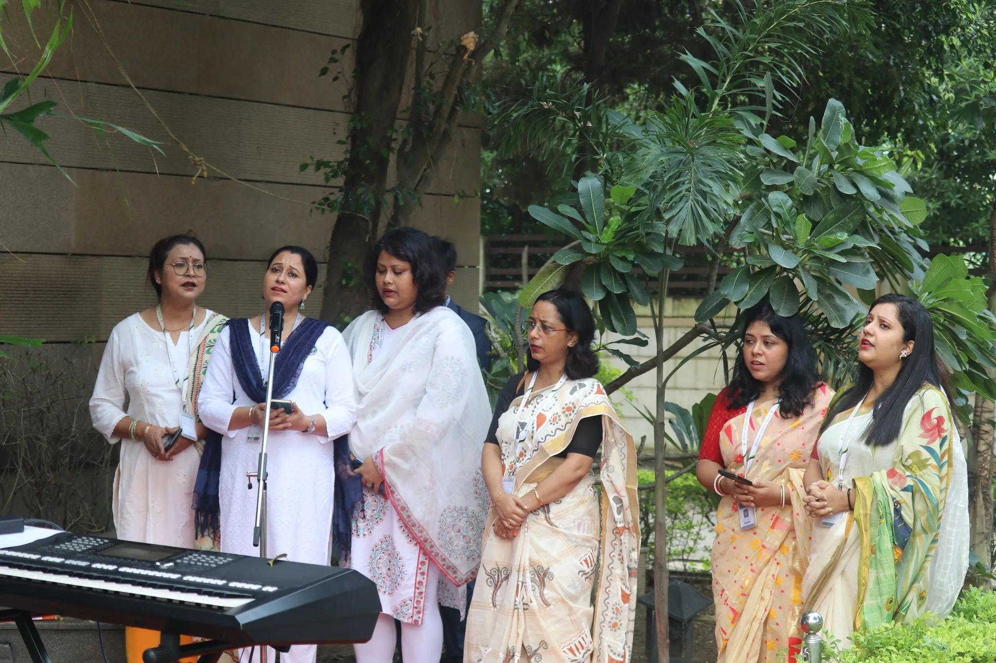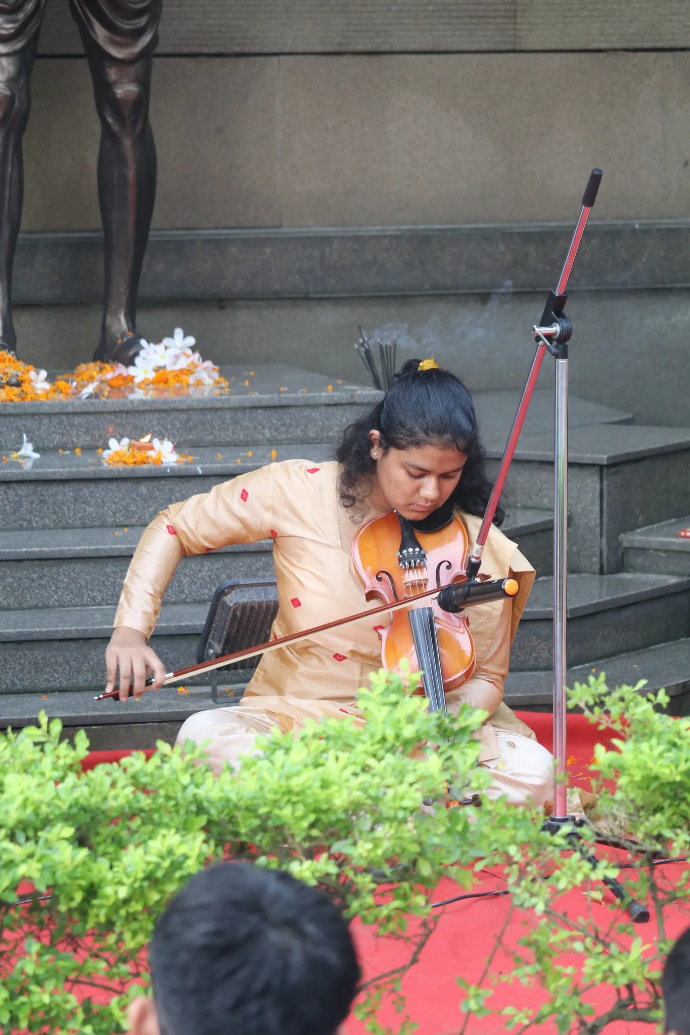 The event began with the garlanding of Mahatma Gandhi’s statue, beautifully adorned with vibrant flowers. Siddhant Sen Deka, Vice Captain of Gandhi House, anchored the program and delivered a thoughtful speech on Gandhi’s life, principles, and philosophy. Toshai Syiem of Grade XI also spoke about the life of Mahatma Gandhi. The audience was captivated by a mesmerizing violin recital by Sayantana Saikia, followed by the teachers’ heartfelt rendition of patriotic bhajans, which created a tranquil and reflective atmosphere. Vice Principal Binita Jain then led an enlightening session on the significance of the Bhajan “Vaishnav Jan To,” accompanied by the soulful vocals of Susanta Chowdhury. Principal Dr. Dillip Kr. Panda further inspired the gathering with a speech highlighting the contributions of both Mahatma Gandhi and Lal Bahadur Shastri to India’s freedom struggle. The celebration concluded with a warm vote of thanks delivered by Dr. Karabi Das, House Mistress of Gandhi House.