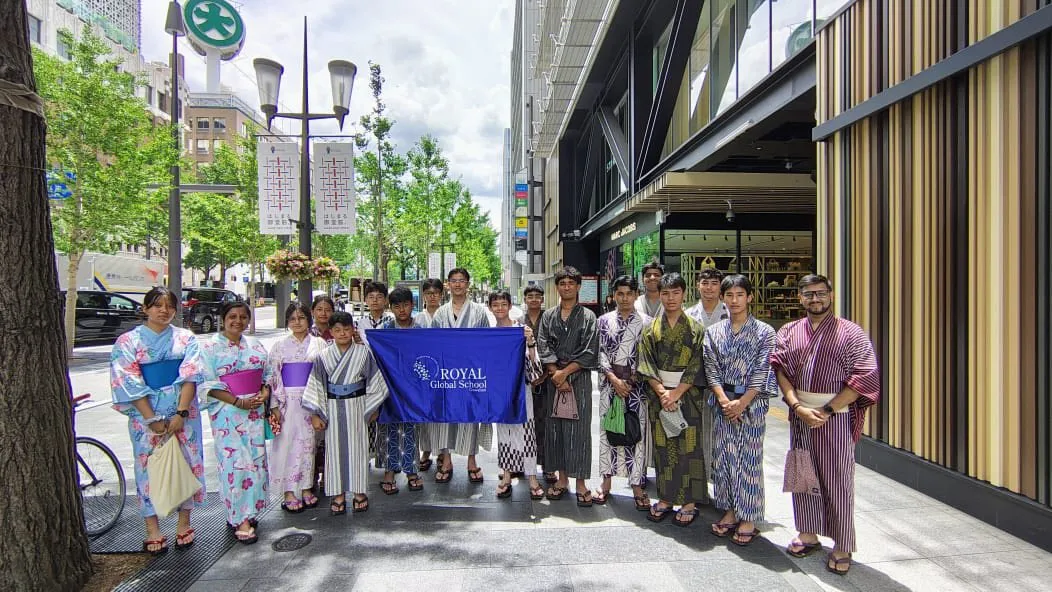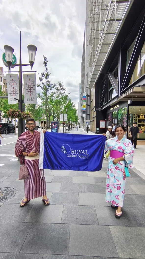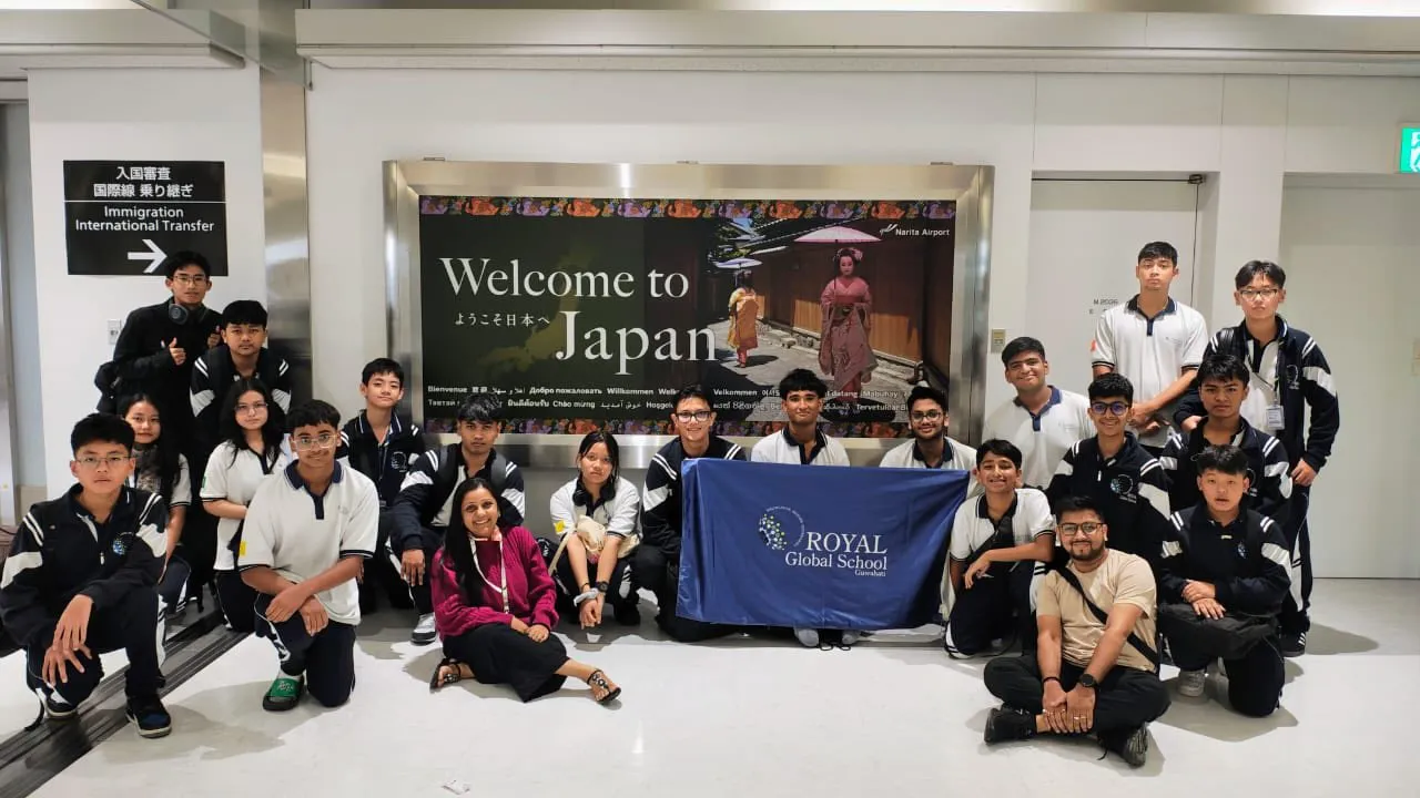 From July 4th to 12th, 2025, a spirited group of 19 students from Grades 8 to 12 of Royal Global School set off on a remarkable educational expedition to Japan, under the guidance of their escort teachers, Mr. Nikhil Ladha and Ms. Pooja Bhattacharjee. The journey took them through the dynamic cities of Tokyo, Osaka, and Kyoto, with breathtaking views of the iconic Mount Fuji.