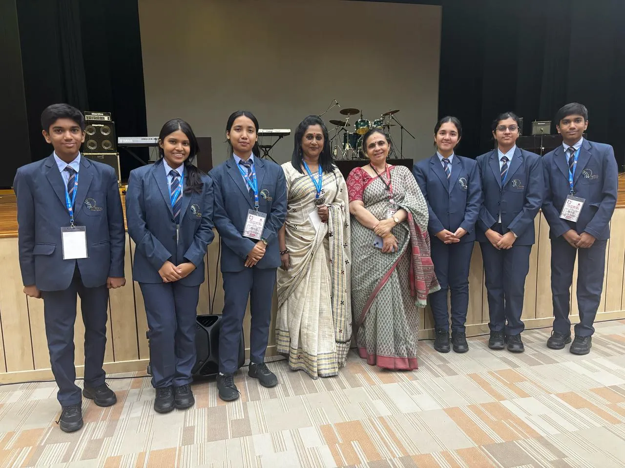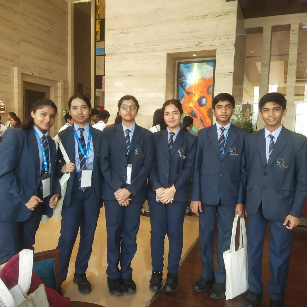 The conference brought together 122 delegates from 17 schools across India and abroad, creating a diverse and inclusive platform for learning and collaboration. Representing our school were six students — Anay Jaiswal (XC), Advay Jaiswal (XC), Ayushi Singhal (XC), Paridhi Gogoi (XC), Anjali Longjam (XB), and Ragini Das (XIE) — who actively engaged in a wide range of sessions and activities.