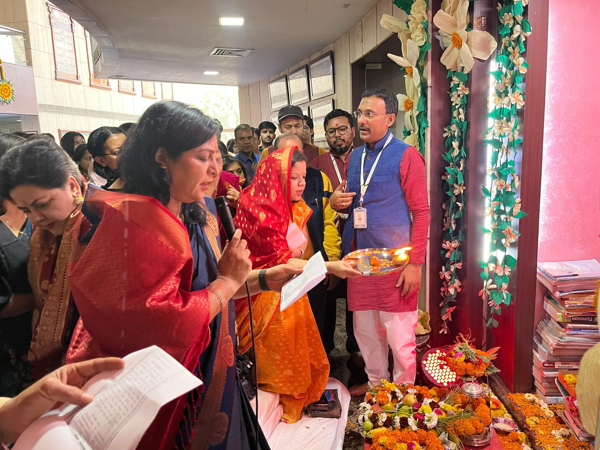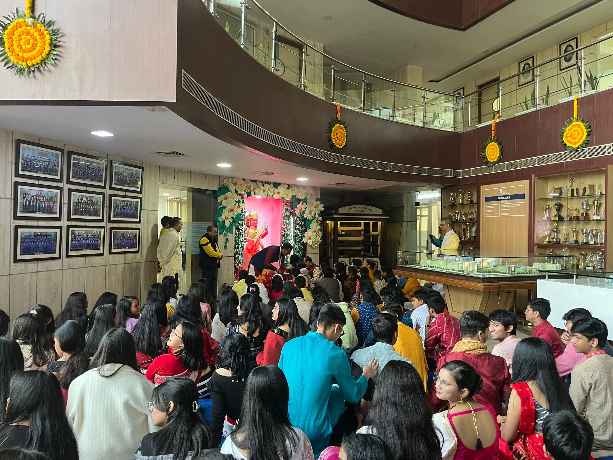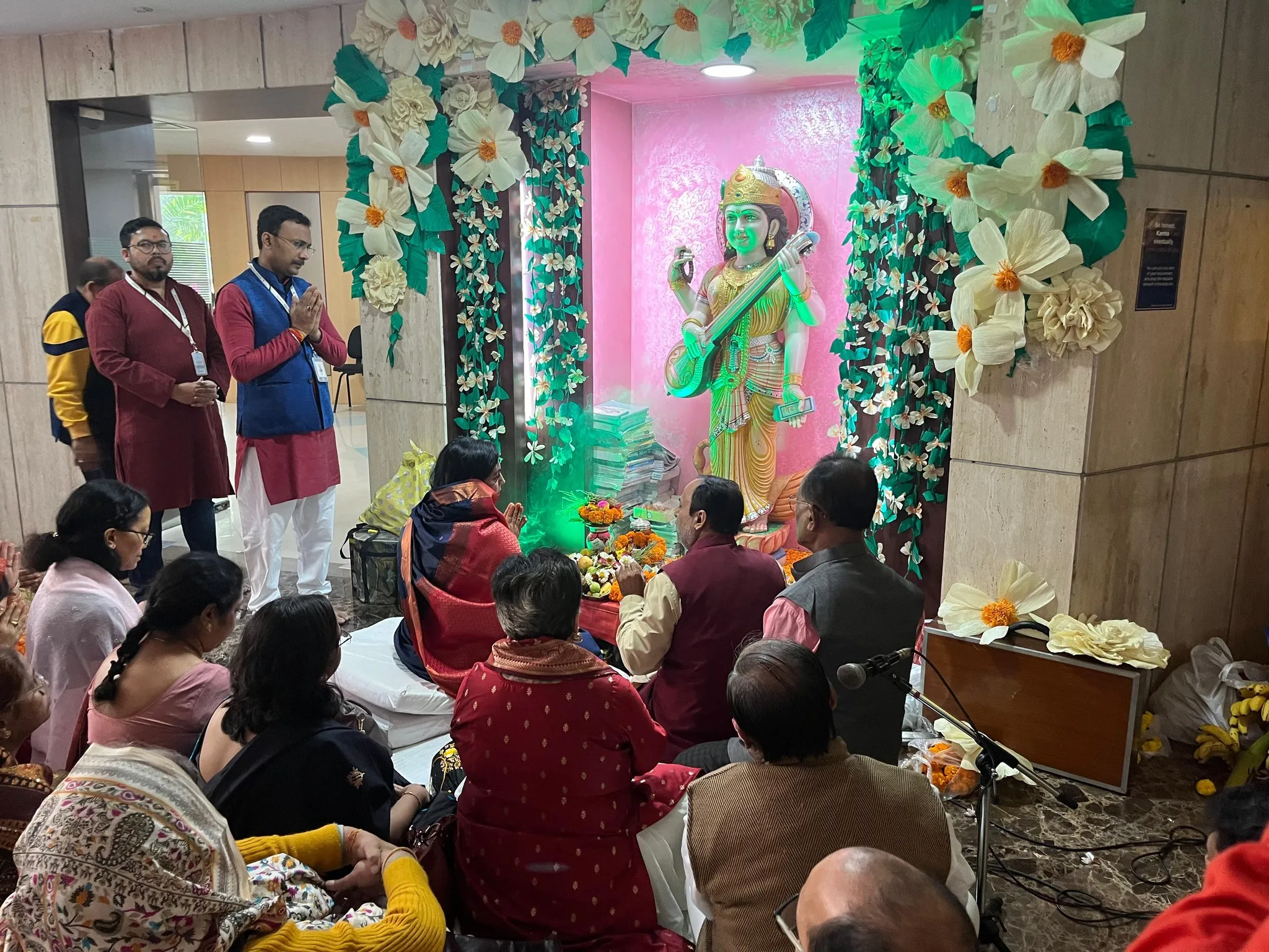 The day commenced with an auspicious puja ceremony conducted by the school’s priest. Students, teachers, and staff members, led by the Vice Principal of the institution gathered to offer prayers and seek the blessings of the Goddess Saraswati for knowledge and academic success. The atmosphere resonated with the melodious chants of hymns and mantras, creating a serene ambience.