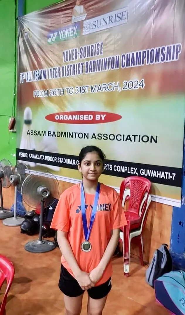 We proudly congratulate Shaanvi Agarwal for securing the silver medal in the badminton championship, representing the Kamrup (Guwahati) district team at the All Assam Inter-District and Open Championship.