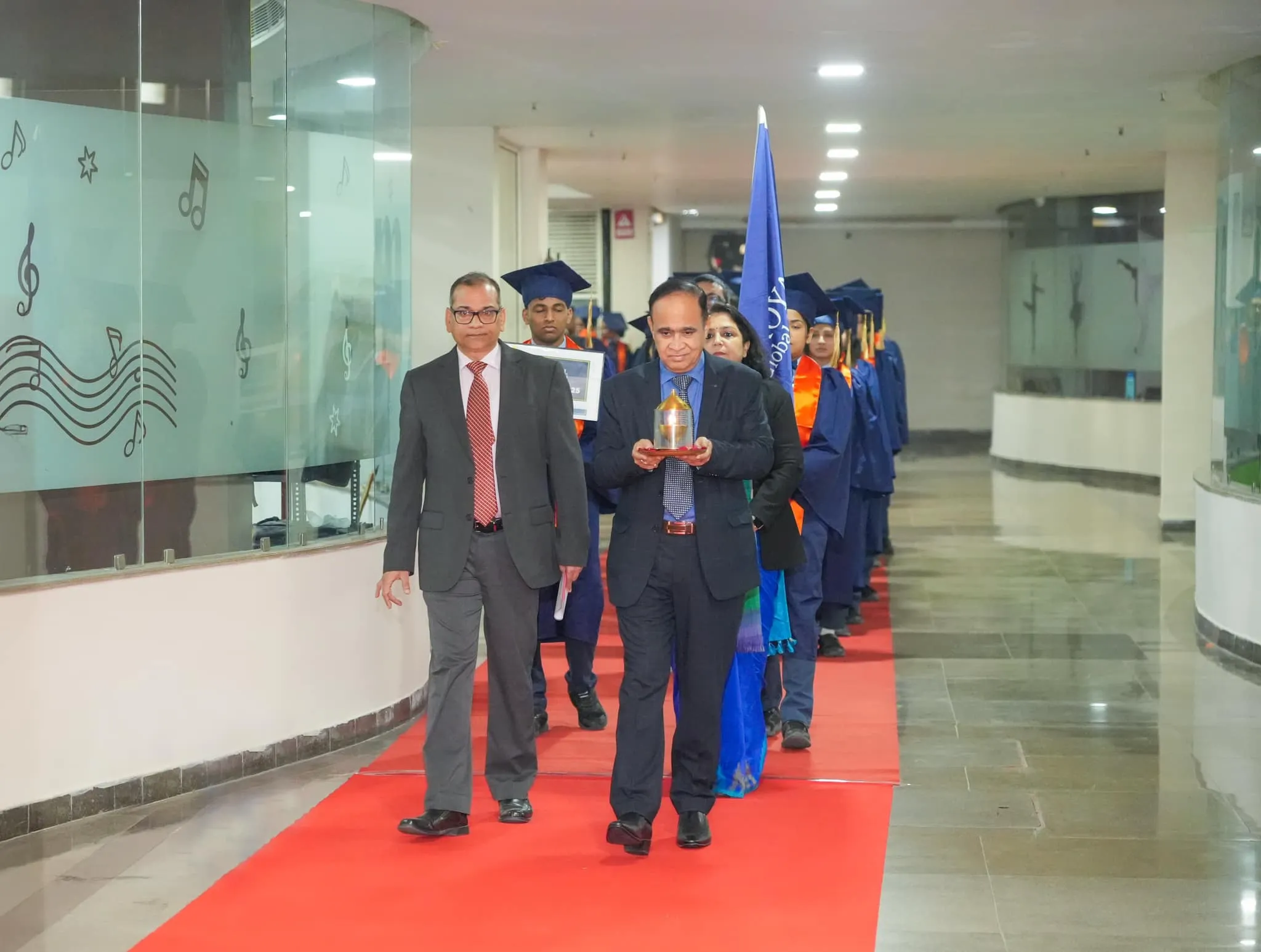Chief Guest Retd. Air Marshal A.K. Gogoi, a decorated officer, addressed career paths, inclusive growth, and navigating the VUCA (Volatility, Uncertainty, Complexity and Ambiguity) world. A soulful Ganesh Vandana was performed by Laxmipriya and Sanvi Agarwal. Chairman Dr. A.K. Pansari, quoting Chanakya, urged students to set societal goals. Director Dr. Arup Mukhopadhyay emphasized perseverance, and Principal Dr. Dillip Kumar Panda inspired with Sanskrit shlokas.
