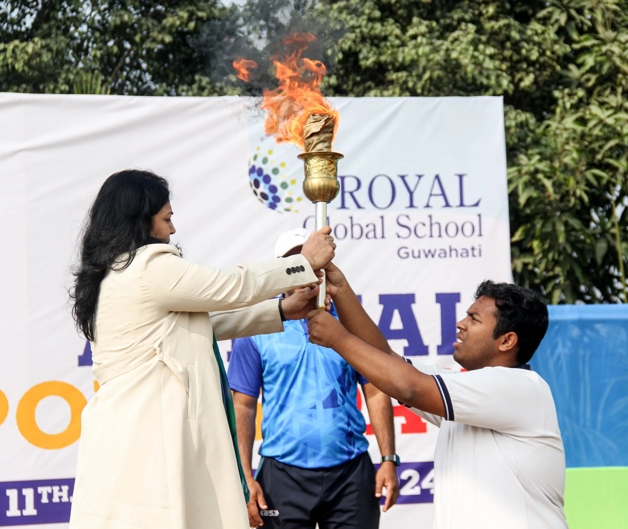 The third day of the Annual Sports Meet was a grand event that brought athletes and spectators together to curate physical prowess and teamwork. The school’s expansive playground served as the venue for the event. Our esteemed guest for the event was Dr. Kiran Seth, an academician, Professor in the department of Mechanical Engineering at the Indian Institute of Technology Delhi since 1976. Dr. Seth is also credited with setting up the society for the promotion of Indian Classical Music and Culture amongst youth. The day’s event spurred off with the bearing of the torch by the Sports Captain and continued by the various national and international sports achievers of the school. The torch lighting ceremony officially unravelled the event. This was followed by the Vice Principal’s speech and the release of balloons by the House Masters. Students from grades 6 to 9 and 11 participated in a variety of events, including march past, gymnastics, 100- & 200-meter race, relay race, horse show, drill and many more. However, the main attraction had been the competitions among parents. The day concluded with a vote of thanks by Ashok Talukdar (HOD Sports) and the awarding of certificates and prizes to the winners. To end it off the house participants walked the ‘March off’ calling an end to the proceedings.