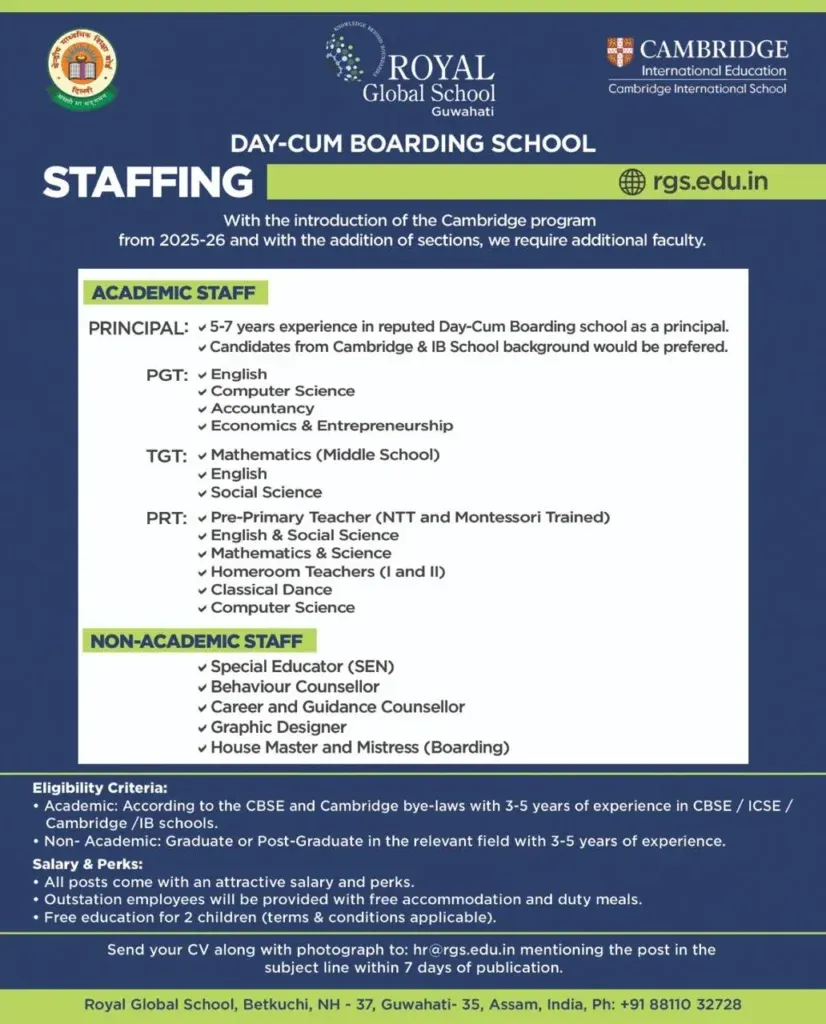 Send your CV along with photograph to ‘hr@rgs.edu.in’ mentioning the post in the subject line within 7 days of publication.
