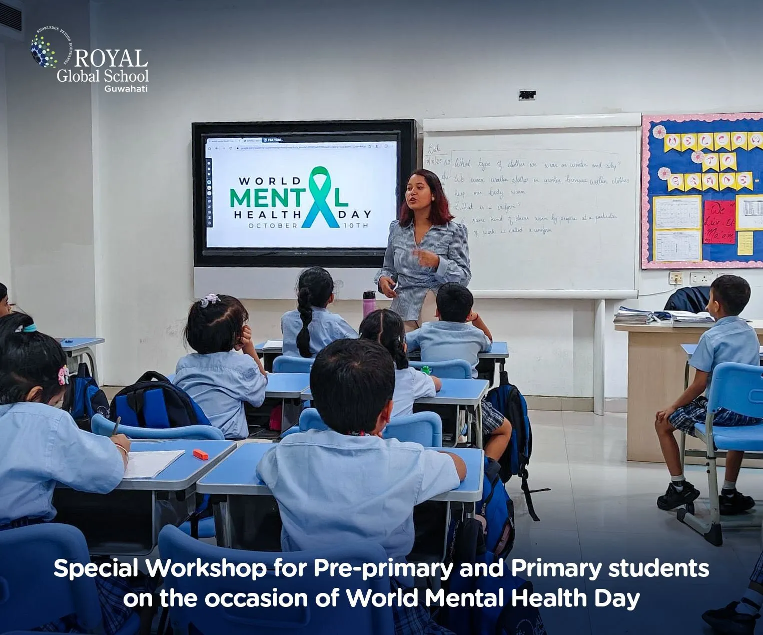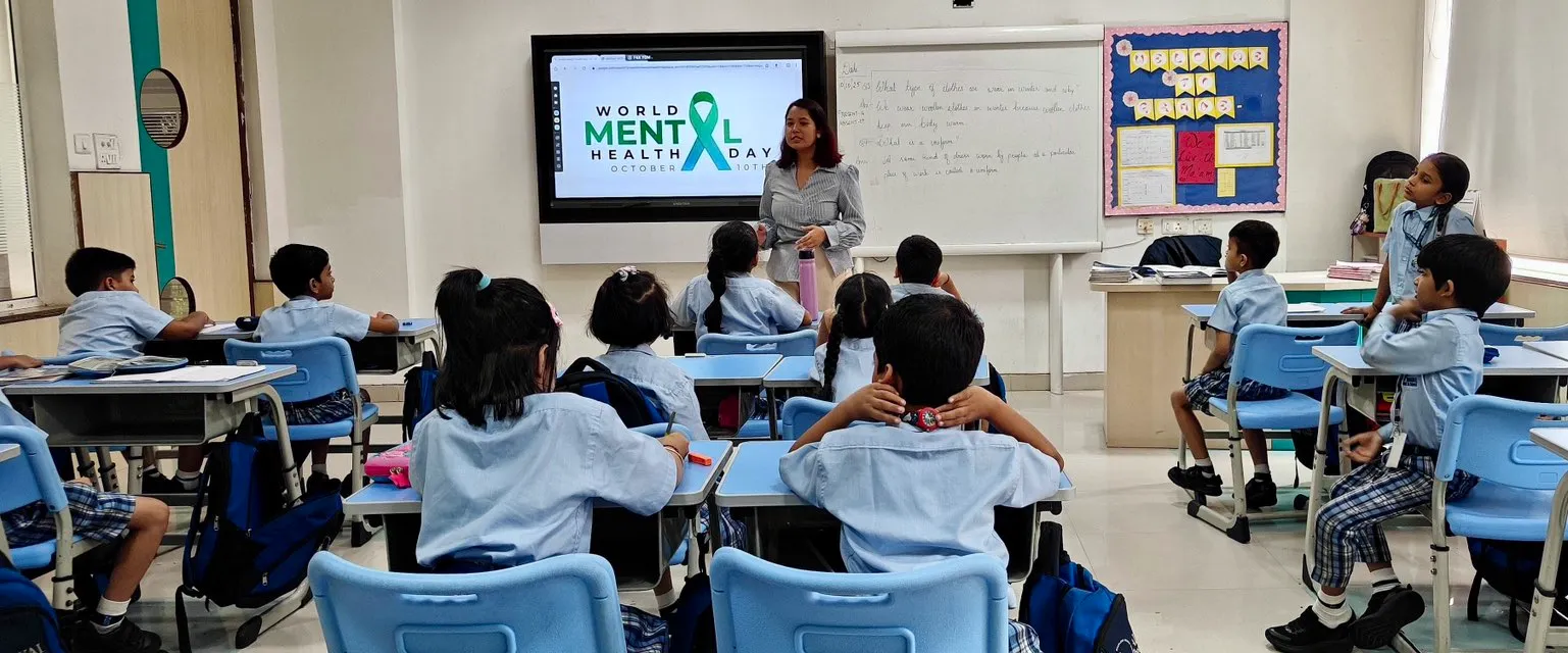 On the occasion of World Mental Health Day, a special workshop was held for pre-primary and primary students to help them understand the importance of caring for their minds and bodies. Through fun discussions and activities, children learned to recognize emotions, share their feelings, and explore simple ways to stay mentally healthy. The engaging session encouraged emotional awareness, resilience, and the message to always “Be kind to your mind.”
